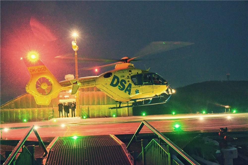 Záletové zkoušky proběhly ve dvou fázích – před soumrakem a po soumraku. Piloti společnosti DSA, kteří zajišťují technický provoz pro Zdravotnickou záchrannou službu Ústeckého kraje, přistávali s vrtulníkem Eurocopter EC 135 T2+ „Barča“.