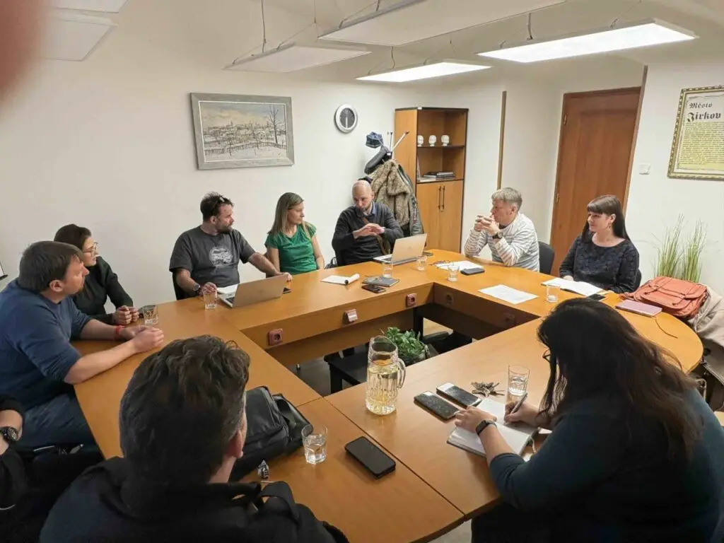 První setkání pracovní skupiny „Dobrá adresa“ v Jirkově. Zástupci města, odborných organizací a Odboru pro sociální začleňování MMR ČR společně řeší kvalitu bydlení a situaci v problematických lokalitách. Foto: Město Jirkov