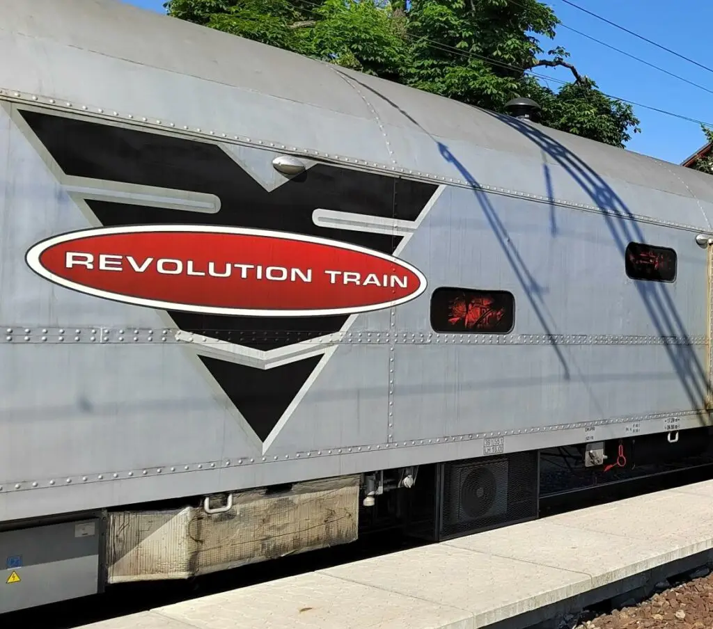 Revolution Train dorazil na nádraží – speciální vlak s výrazným logem nabízí návštěvníkům silný preventivní program zaměřený na rizika závislostí. Foto: klasterec.cz