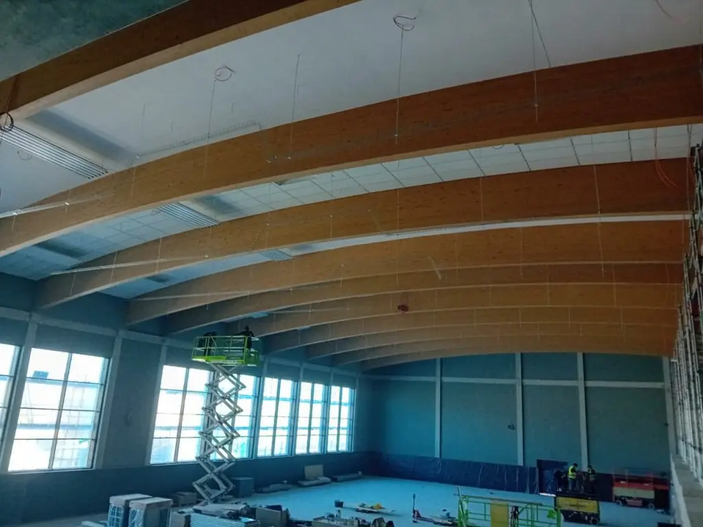V hale se v těchto dnech dokončují především vnitřní úpravy. Probíhá montáž elektroinstalace, vzduchotechniky, kamerových rozvodů i audiovizuální techniky. Součástí je také instalace akustických obkladů, které jsou klíčové pro kvalitní ozvučení a komfort při sportovních utkáních.
